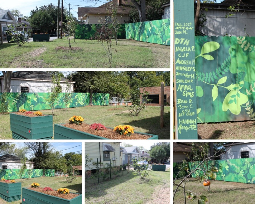 The Anthony Street Orchard features two pear trees, a persimmon tree, a fig tree, eight blackberry bushes, and wide planters filled with perennial herbs.
